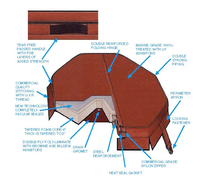 A durable and attractive spa cover is the best way to prolong the life of your spa, while protecting it from the elements and saving money on energy costs. Spa covers come in an array of colors. Cover lifters help you quickly lift the cover.